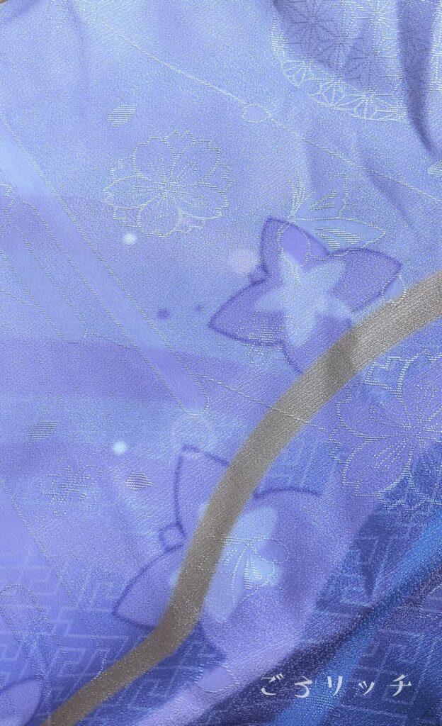 生地自体に、着物のように浮き上がる模様が施されています。全体的に施され桜や蝶が舞っていてとても素敵✨