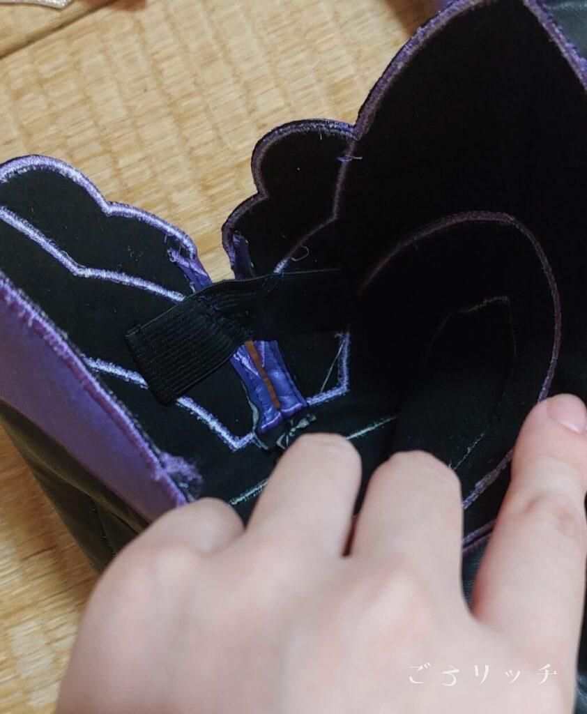 合皮なのでパツパツで履けないんじゃないか、、と思ってたんですが、これ伸縮めちゃめちゃあるので意外とするっと履けます。安心。