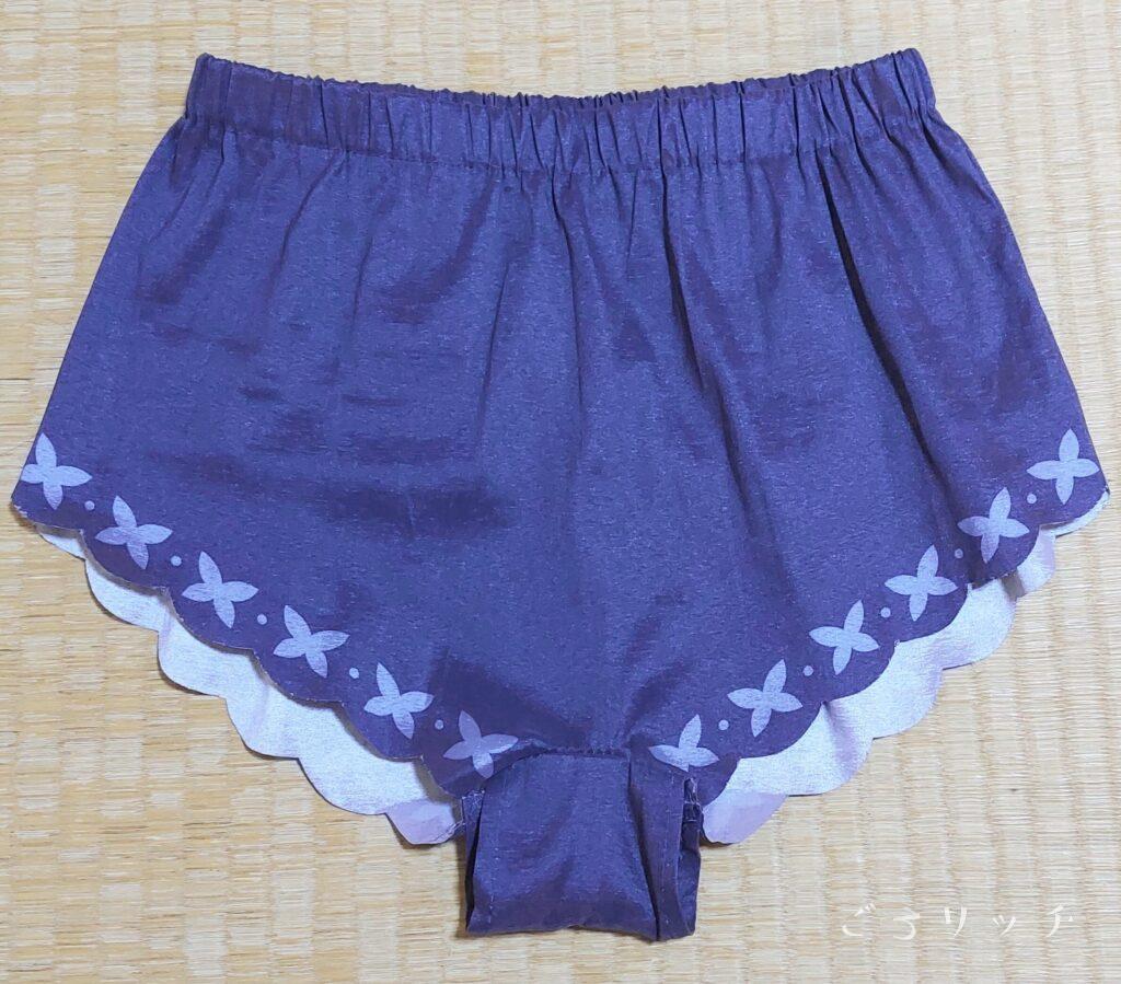 腰巻き下のショートパンツは楽々のウエストゴム。原作忠実にピタッとなるように、裏地なしですが下着は透けない素材です。サラッとした質感。