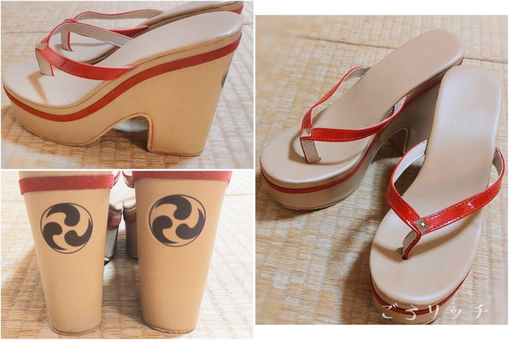 足裏に当たる部分は、若干クッション性あるので足痛くなることはなさそうです。ヒール部分の紋も綺麗にあります。