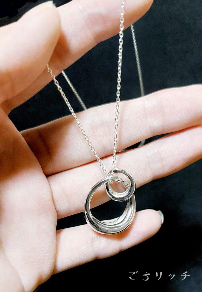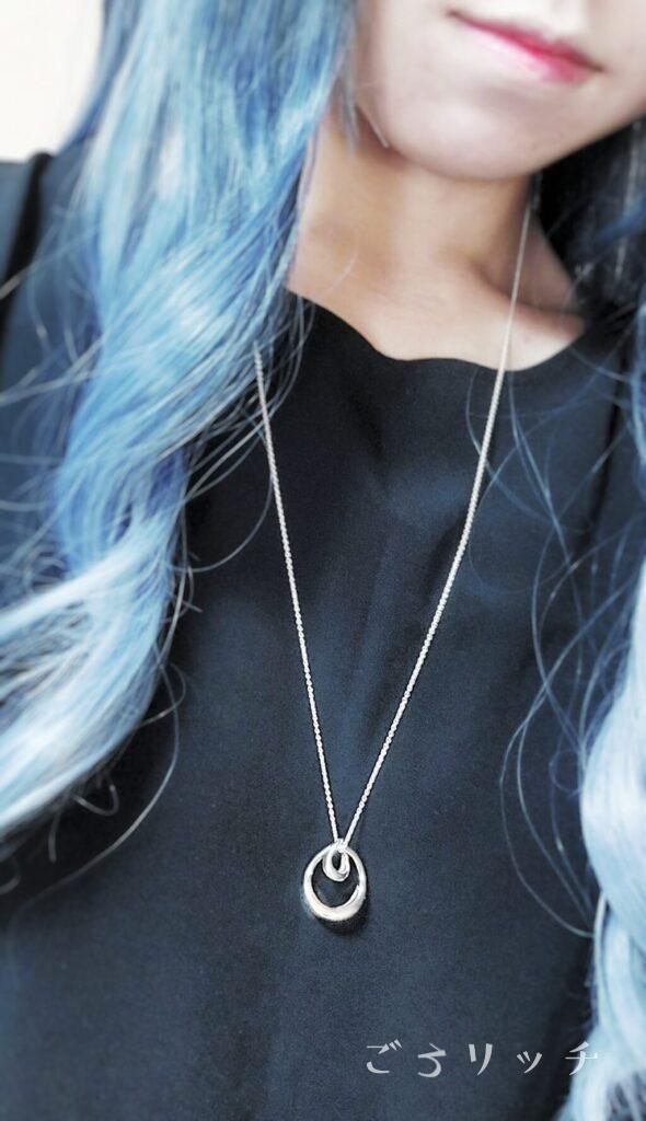 繊細な白銀のチェーンが、カジュアルさと上品さを両立させています。